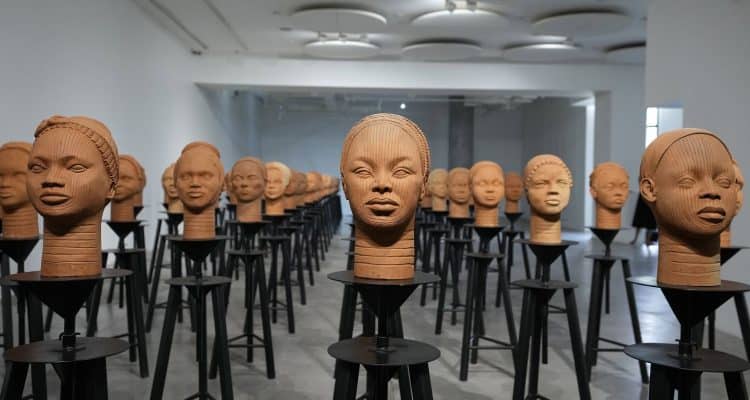 The artwork is inspired by ancient Nigerian Ife terracotta heads and the Exhibition is titled, “Statues Also Breathe.” The sculptures recreate the faces, facial expressions and hair patterns of the girls.