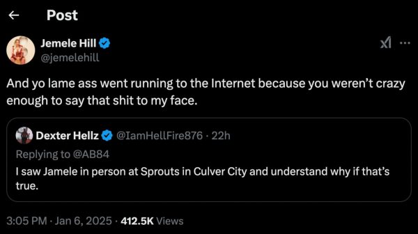 Hill, not one to back down, responded with sharp words, addressing a fan who had supported Brown’s insult. “And yo lame a** went running to the Internet because you weren’t crazy enough to say that sh*t to my face,” she fired back, taking aim at the cowardice of the online insult.
