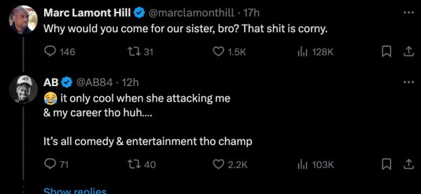 Brown, however, was quick to continue his tirade. He claimed that Hill was only upset because she has attacked his career in the past, dismissing his insult as “all comedy & entertainment,” despite the personal nature of his remarks. “It’s only cool when she is attacking me & my career tho huh… It’s all comedy & entertainment tho champ,” he wrote.