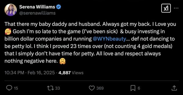 Serena Williams is letting fans know her appearance at the Super Bowl was not done to be petty. Williams gave an update on her life after thanking her husband for sticking up for her.