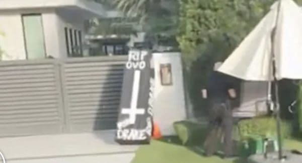 Scrawled across the coffin in white lettering were the phrases “RIP OVO” and “RIP Drake,” along with an upside-down cross. Police say the two individuals then knelt in prayer in front of the coffin before driving off. The security guard later had the casket destroyed and discarded.