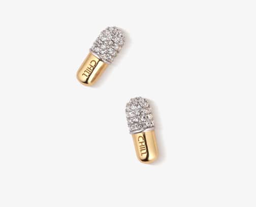 These dazzling stud earrings match the Chill Pill necklace and serve as a wearable symbol of calm and self-care. With their unique design, they make a fun and meaningful addition to any jewelry collection.