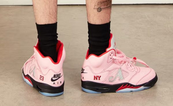 Fashion brand Awake NY has given the first look at their Air Jordan Retro 5. The sneaker, dubbed “Arctic Pink,” places the brand’s “A” logo on the sneaker and drops NY on the sneaker where 23 is typically placed.