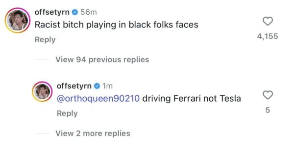 Offset, expressing his frustration, took to Instagram to call out Musk. “Racist b***h playin’ in Black folks’ faces,” he wrote in a comment. He also decided to boycott Tesla, stating, “Driving Ferrari, not Tesla.”