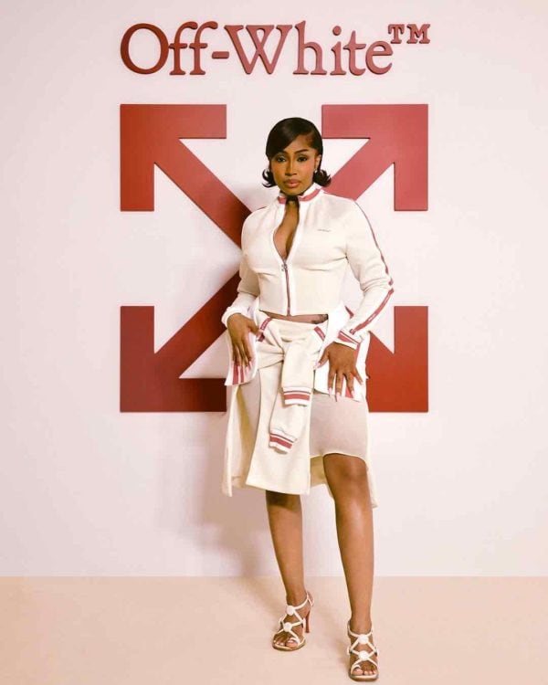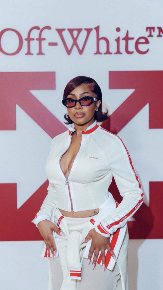 Caresha (Yung Miami) made a bold statement at the Off-White Fall/Winter 2025 show during Paris Fashion Week, rocking a striking red and white ensemble. The collection, themed “State of Resistance,” blended structured tailoring with deconstructed silhouettes, pushing the boundaries of fashion and rebellion.