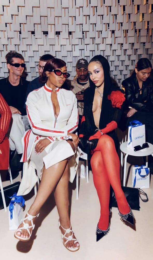 The star-studded event featured appearances from Ice Spice, Doja Cat, Burna Boy, Asake, and Vogue Editor-in-Chief Anna Wintour, all witnessing IB Kamara’s innovative creative direction for the brand. With statement outerwear and experimental layering, Off-White’s latest show embodied defiance, creativity, and cultural impact—qualities that Yung Miami effortlessly exudes.