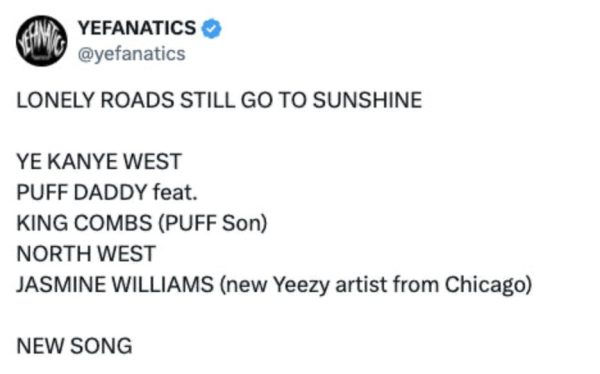 Onto the track. It’s titled “Lonely Roads Still Go to Sunshine,” and Ye shared it on X (formerly Twitter) on Saturday (March 15).