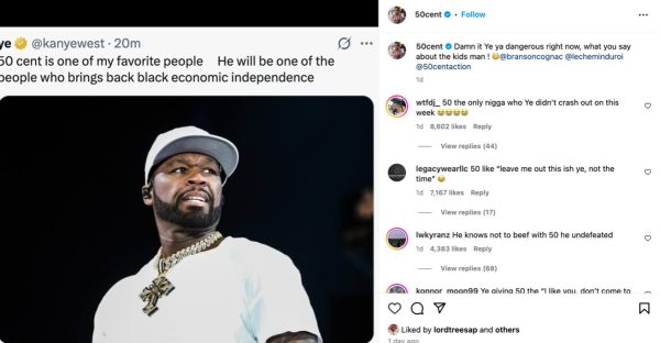 He wrote: “50 Cent is one of my favorite people. He will be one of the people who brings back Black economic independence.” The unexpected compliment caught 50 Cent’s attention, prompting him to respond in his signature comedic style. “Damn it Ye ya dangerous right now, what you say about the kids man,” 50 Cent quipped on his Instagram, referencing Ye’s recent controversial remarks about other celebrities’ children.