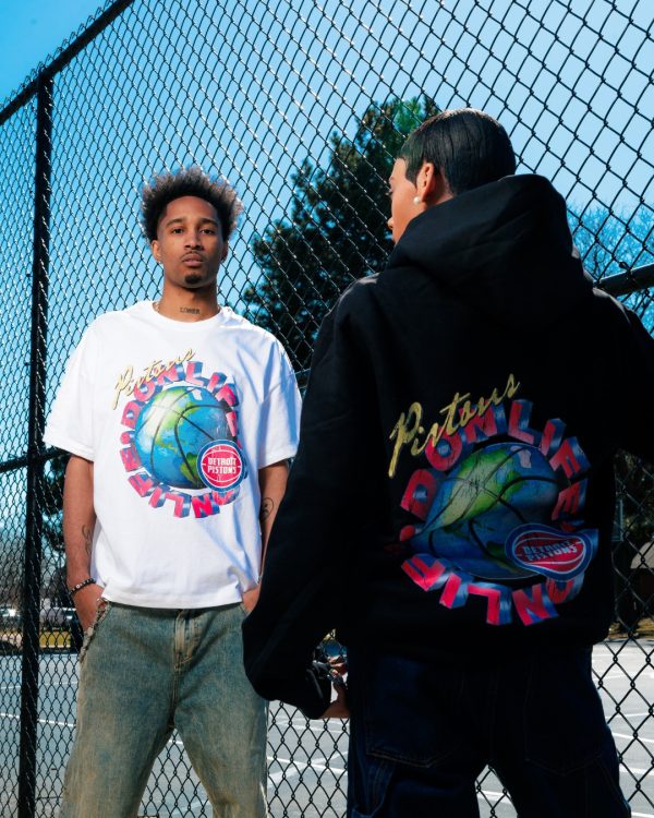 The exclusive “Detroit, World Tour 2025” design in t-shirt and hoodie options will be sold starting March 25 at the arena’s Team Store and online at Pistons313shop.com.