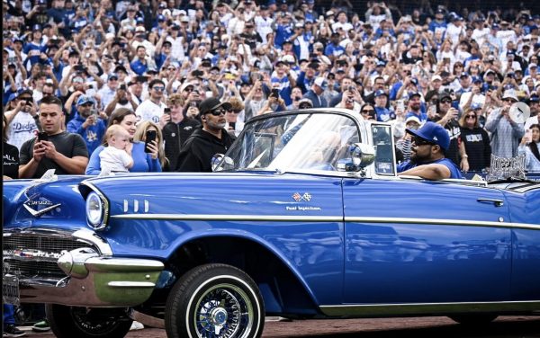 The Los Angeles Dodgers kicked off their 2025 MLB season with a championship celebration as hip-hop legend and die-hard Dodgers fan Ice Cube made a grand entrance onto the field in true West Coast style. Rolling up in a custom blue 1957 Chevy Impala, Cube set the tone for what was already a night of high energy at Dodger Stadium.