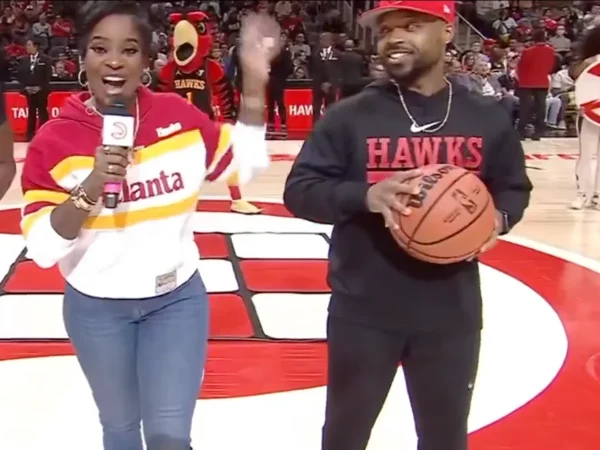 A fan attending the Atlanta Hawks’ matchup against the Portland Trail Blazers on Tuesday night had to be stretchered off the court after suffering a severe knee injury during an in-game challenge at State Farm Arena.