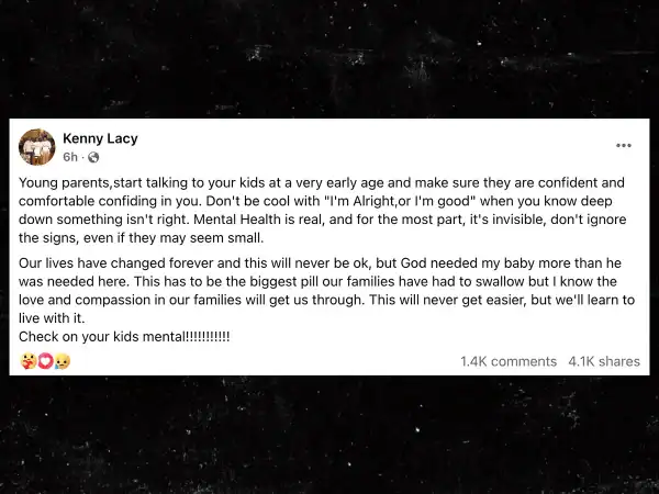 Lacy’s family members have spoken out since his death, urging others to pay closer attention to signs of emotional distress and to take mental health seriously. His relative, Kenny Lacy, shared a message online: