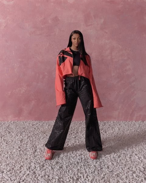 The SS25 collection leans into a vibrant color palette of ‘Coral Pink’ and ‘Gold Chrome,’ capturing Reese’s unapologetic style with unique details such as “Unapologetically Angel” sockliners and a standout “Angel Aura” graphic tee. Headlining the footwear is the Reebok x Angel Shaqnosis ($150), a fresh pink-and-gold take on the iconic silhouette made famous by Shaquille O’Neal, Reese’s mentor and Reebok President of Basketball.
