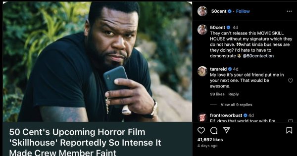 “They can’t release this movie Skillhouse without my signature, which they do not have,” 50 wrote on Instagram. “What kinda business are they doing? I’d hate to have to demonstrate.”
