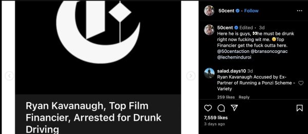 Taking his criticism further, 50 Cent posted screenshots of past articles referencing Kavanaugh’s legal issues, including a DUI arrest, adding, “Here he is guys, he must be drunk right now fucking wit me. Top Financier? Get the fuck outta here.”