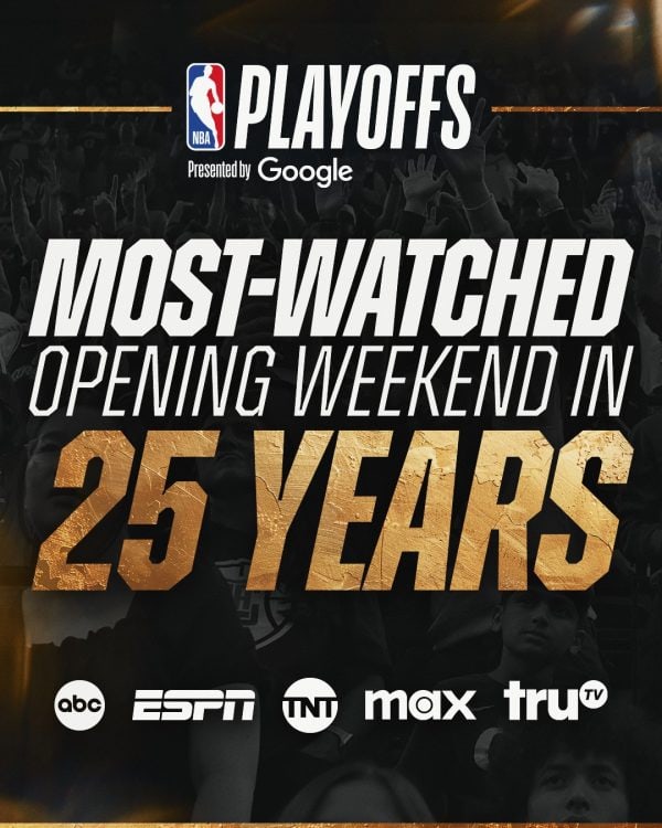 ESPN and TNT Sports each shattered records. ESPN platforms (ABC/ESPN) averaged 4.49 million viewers across six games, setting a new high for the network’s playoff opening weekend. Meanwhile, TNT, truTV, and Max’s two-game coverage averaged 4.13 million viewers—the network’s best since 2017.