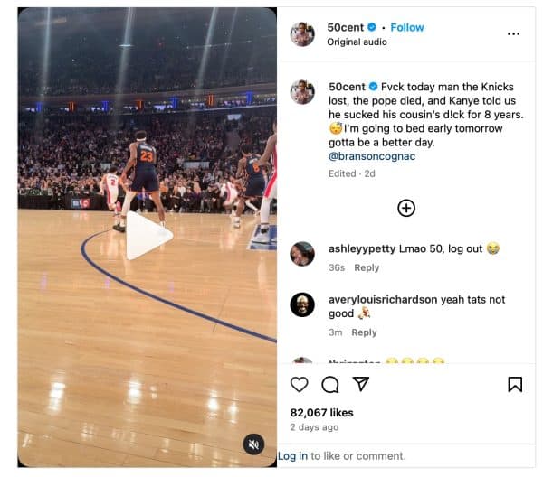 Never one to hold back, 50 Cent addressed the situation on Instagram. After commenting on the New York Knicks’ playoff loss and the reported passing of Pope Francis, he turned his attention to Ye’s tweet.