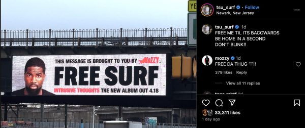 This week, Surf sparked conversation after a cryptic post surfaced on his Instagram page. The image shows a billboard promoting Mozzy’s latest project, Intrusive Thoughts, with a standout message featuring Surf’s name. “This message is brought to you by Mozzy. Free Surf,” the billboard reads, referencing Surf’s appearance on the album’s track, “FREE SURF.” The caption beneath the post further fueled speculation that Surf might be coming home sooner than expected: “FREE ME TIL ITS BACCWARDS. BE HOME IN A SECOND. DON’T BLINK.”
