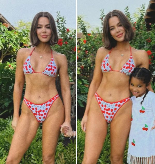 In recent Instagram photos, Khloé flaunted her lean figure and toned abs while posing in a bikini alongside her children, True, 7, and Tatum, 2 — both of whom she shares with Cleveland Cavaliers star Tristan Thompson.