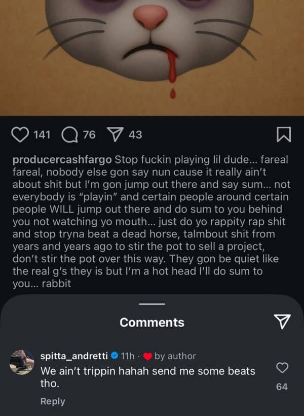 Among the many who were dissed by Freddie Gibbs on Alfredo 2 was former collaborator Curren$y. Is he bothered? Seemingly not. Spitta hit Instagram and gave a reply when producer Cash Fargo shared an image of a brusied bunny, representing Gibbs.