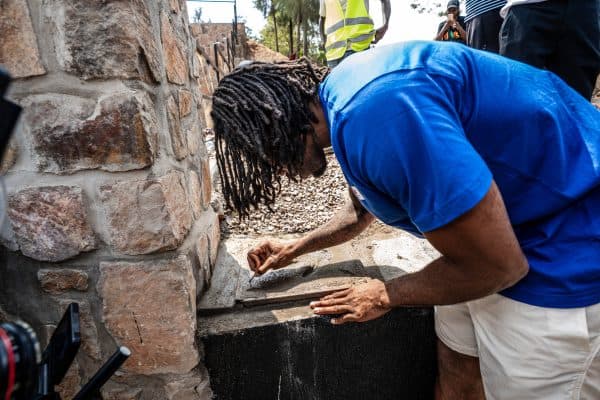As part of the Giants of Africa “Built Within” initiative—a commitment to building 100 courts across Africa—Leonard unveiled a vibrant new outdoor basketball court at St. Ignatius School in one of Kigali’s underserved districts. Drawing from his childhood experience on the blacktops of Moreno Valley, California, Leonard infused the court with personal flair: bold colors inspired by his alma mater, and motivational affirmations like: