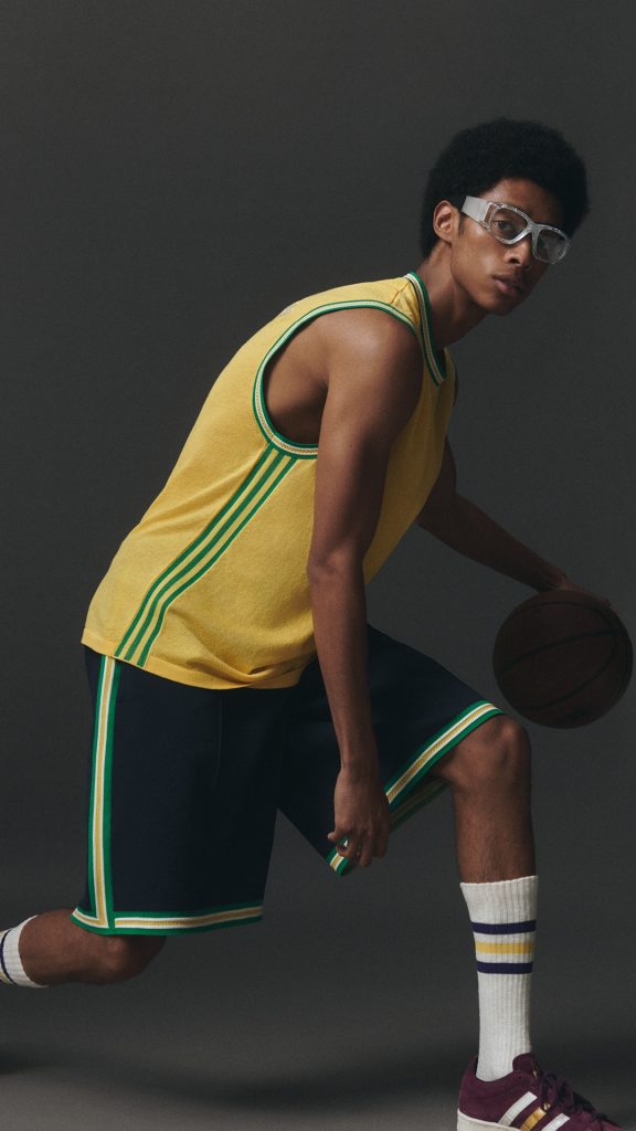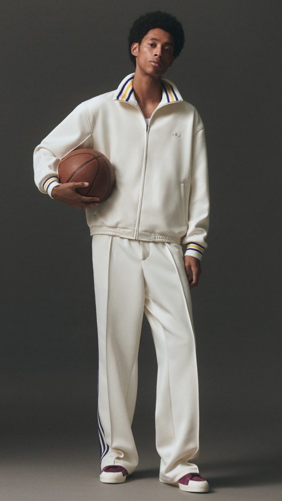 Footwear takes center stage with the revival of the adidas Jabbar silhouette. The WB Jabbar Lo updates the 1970s sneaker with a suede upper, alternating Three Stripes, and gold foil sky hook artwork on the tongue, connecting to Abdul-Jabbar’s sporting and artistic journey.