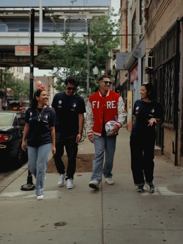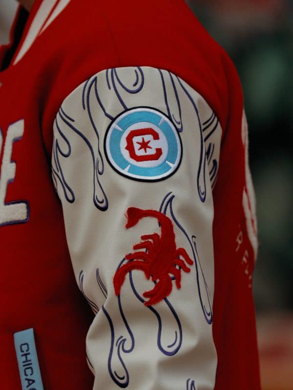 The Gente Fina collection, designed by founder Emmanuel Cabrera, includes co-branded t-shirts, knitted polos, and varsity jackets that blend fútbol culture with Chicago streetwear. Limited quantities will be available at an exclusive launch event at the Endeavor Health Fire Pitch on Sept. 20 from 5 to 11 p.m. The party will feature a live viewing of the Fire’s match against Minnesota United FC at 7:30 p.m.