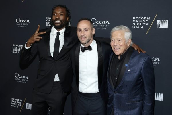 ATLANTIC CITY, NEW JERSEY – SEPTEMBER 13: (L-R) Meek Mill, Michael Rubin and Robert Kraft attend the Michael Rubin REFORM Alliance Casino Night Event on September 13, 2025 in Atlantic City, New Jersey. (Photo by Arturo Holmes/Getty Images for REFORM Alliance)