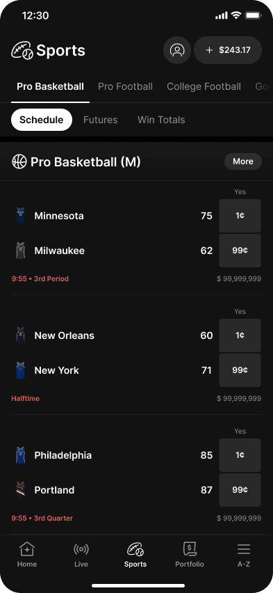 The platform allows users to trade contracts tied to sports, financial indicators, economic data and political outcomes. Examples include predicting whether a team will score more than 20 points or whether the Federal Reserve will cut interest rates.