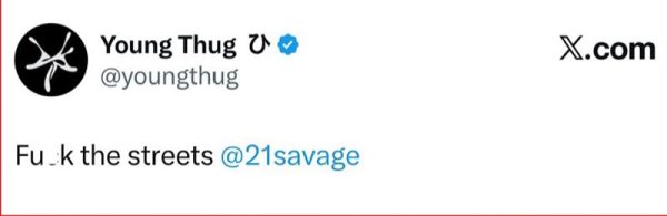 The conversation resurfaced after Young Thug posted a brief but loaded message aimed at 21 Savage, writing, “Fk the streets @21savage.” The remark followed 21 Savage’s public push for reconciliation between Thug and Gunna, a stance that challenged the long-held street codes that often dictate how disputes play out in hip-hop.