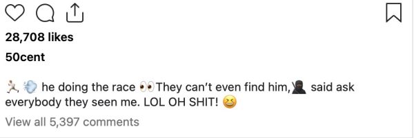 Rather than address the situation directly, 50 Cent opted for commentary that leaned heavily into ridicule. His caption read, “ he doing the race They can’t even find him, said ask everybody they seen me. LOL OH SHIT! ”