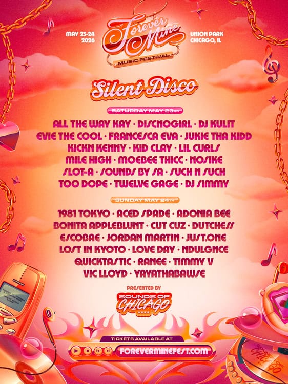 Beyond the music, the festival features live art, Y2K-inspired photo moments, local food vendors, interactive activations, and VIP upgrades. Forever Mine runs from 12 p.m. to 10 p.m. daily and is open to all ages, with free entry for kids five and under. Tickets go on sale Friday, January 30, at 12 p.m. CT.