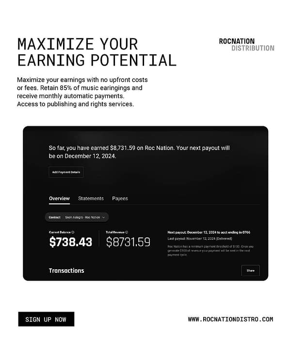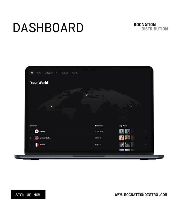 Independent artists can now sign up and distribute music directly through the dashboard. Roc Nation Distribution President Krystian Santini called the platform a significant step forward. “It is a one stop shop that will enable artists to receive a holistic understanding of their followers so they can build impactful strategies and broaden their music’s reach without financial barriers,” Santini said.
