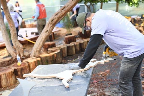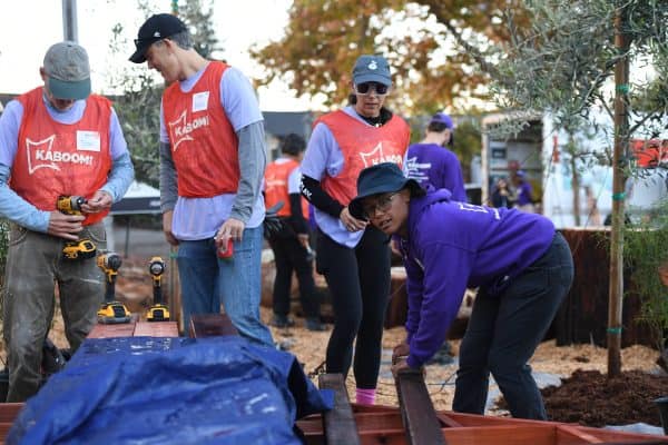 The massive build day was a collaboration between Eat. Learn. Play., KABOOM!, the Oakland Unified School District (OUSD), and corporate partners like Workday and Kaiser Permanente. Alongside parents, educators, and community members, volunteers dedicated their time to constructing a space designed specifically with Emerson students in mind.